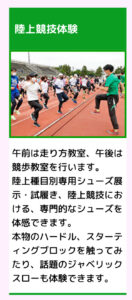 午前中のアジア大会・アジアパラ大会の陸上競技体験の走り方の指導を私が担当します。ランニング・スプリントに必要な筋力や走り方のフォーム、走るのに必要な動きのエクササイズを楽しく行います。他にも色々な体験ができますので、どうぞお越しください☺️